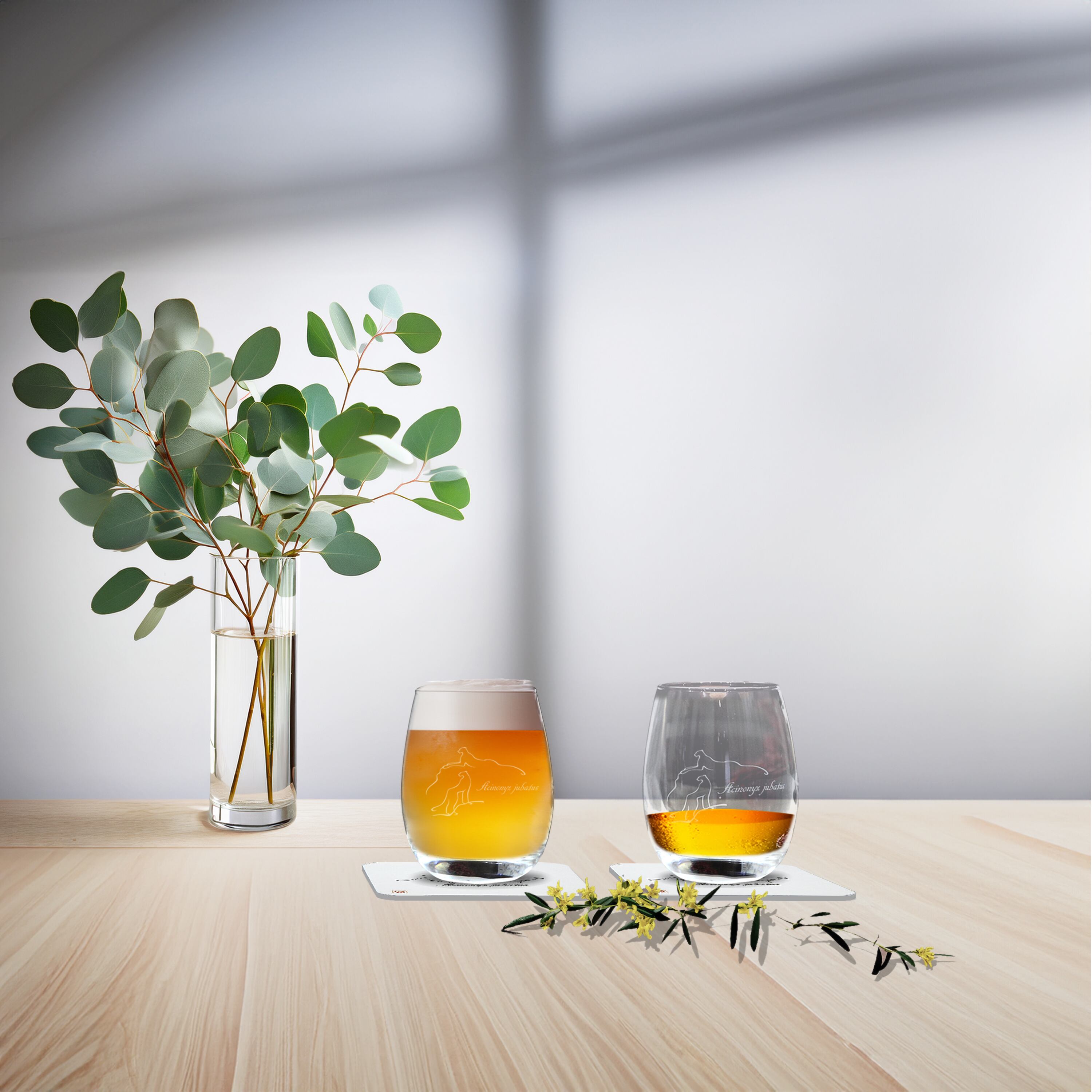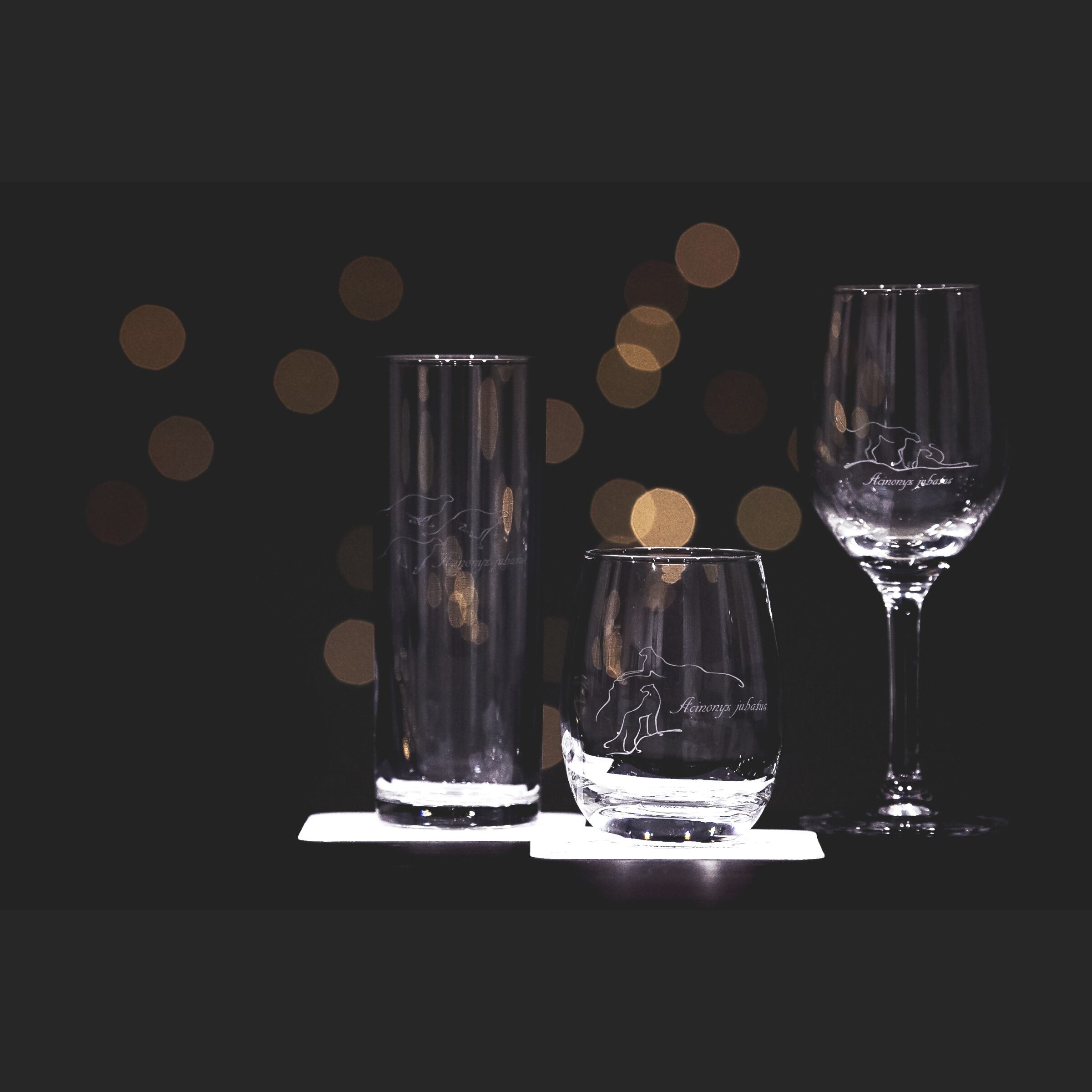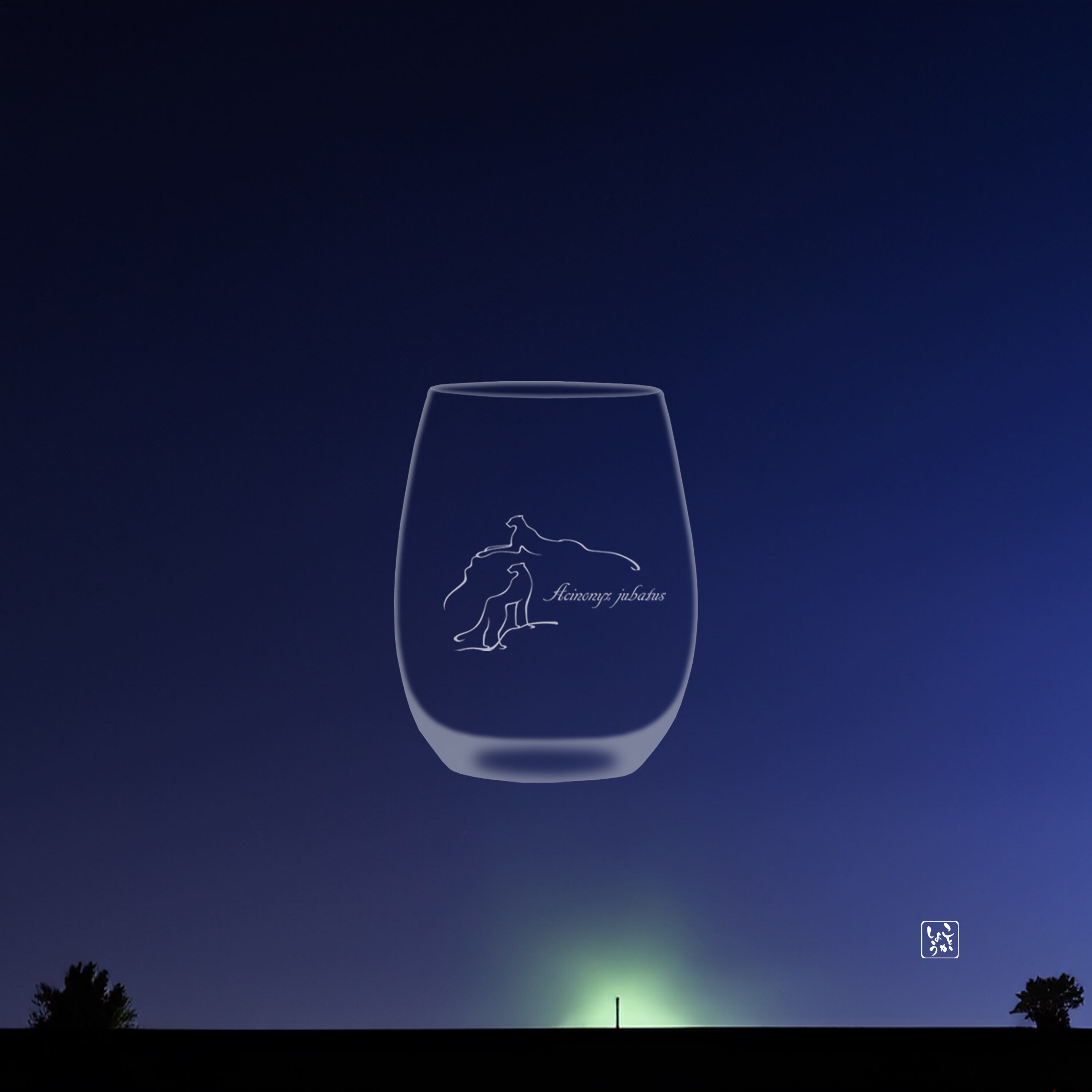 チーターをモチーフにしたオリジナルRグラスのペアセットと